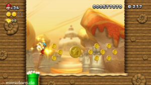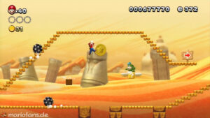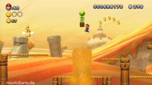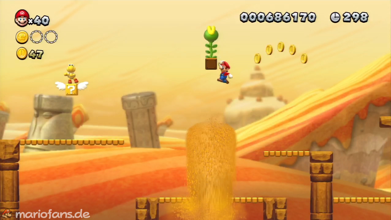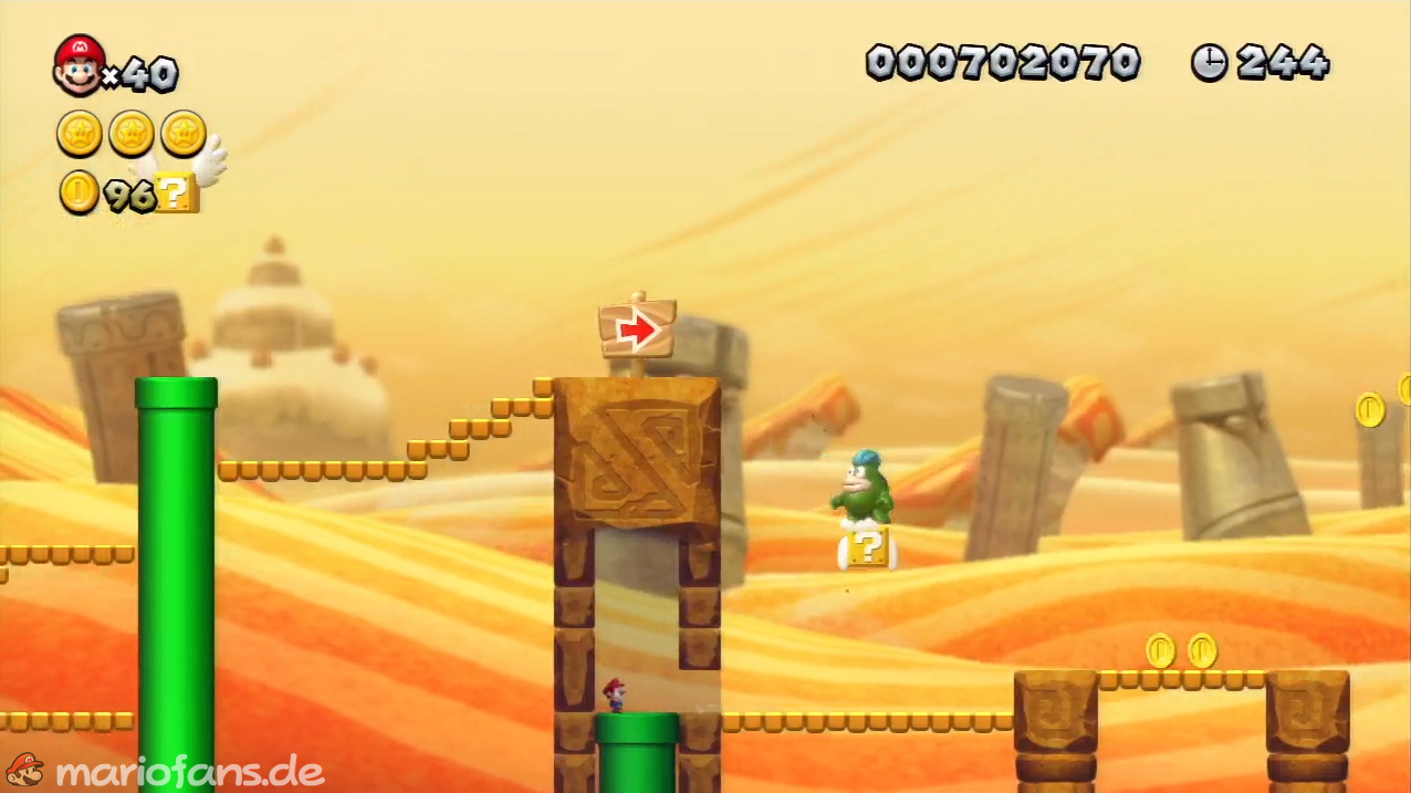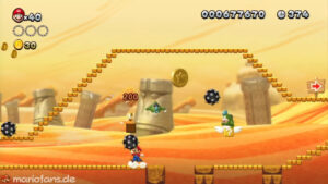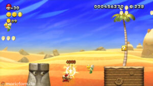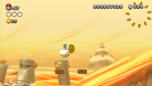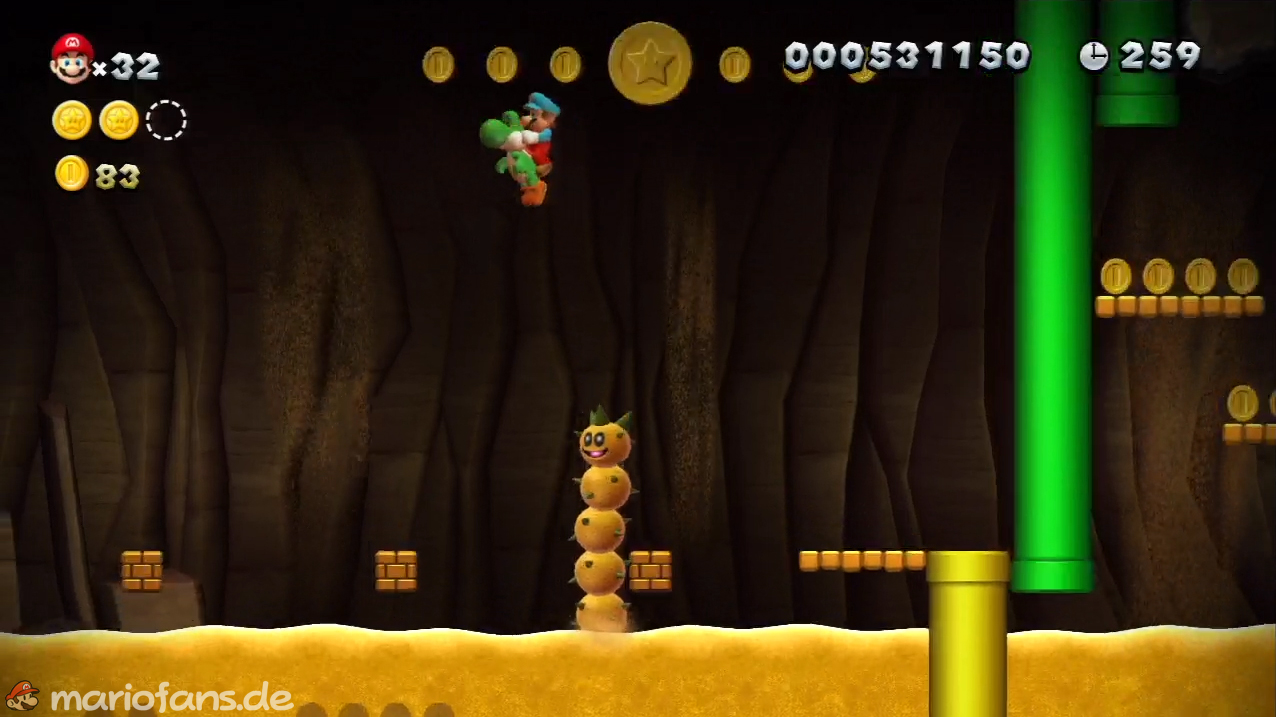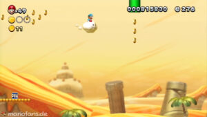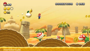Welcome to World 2: Layer-Cake Desert in New Super Mario Bros. U — a challenging desert world filled with shifting sands, Pokeys, and hidden paths.
