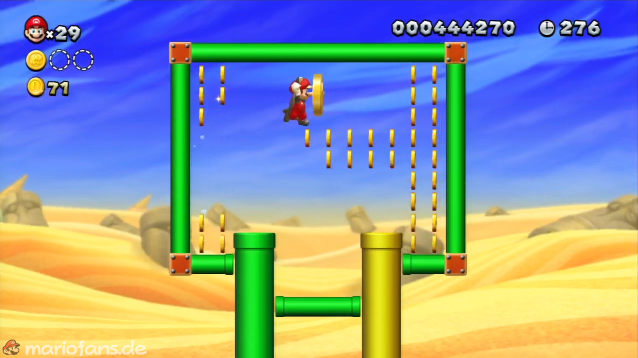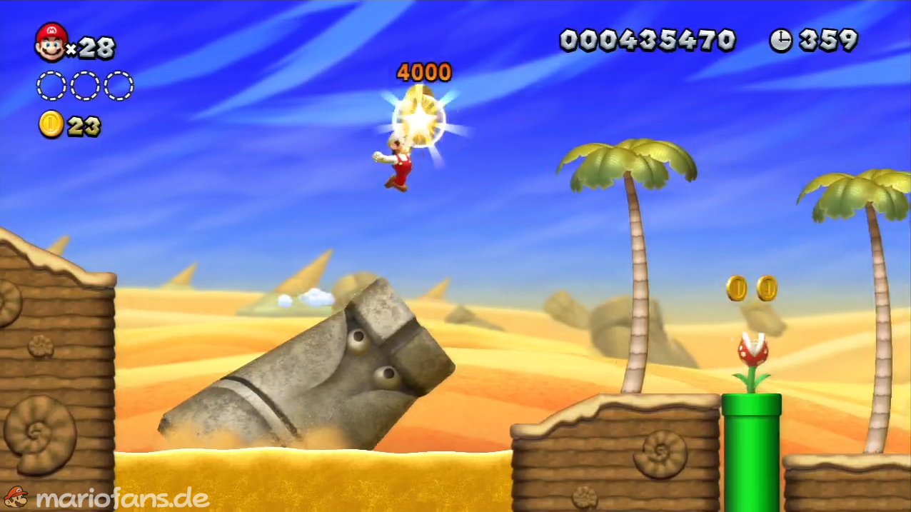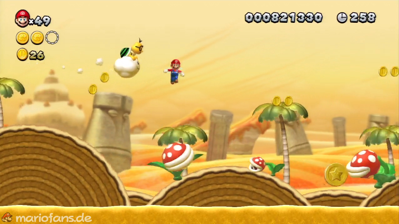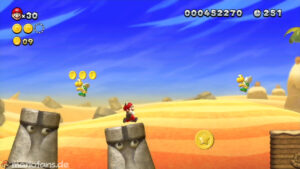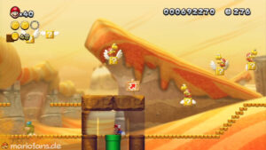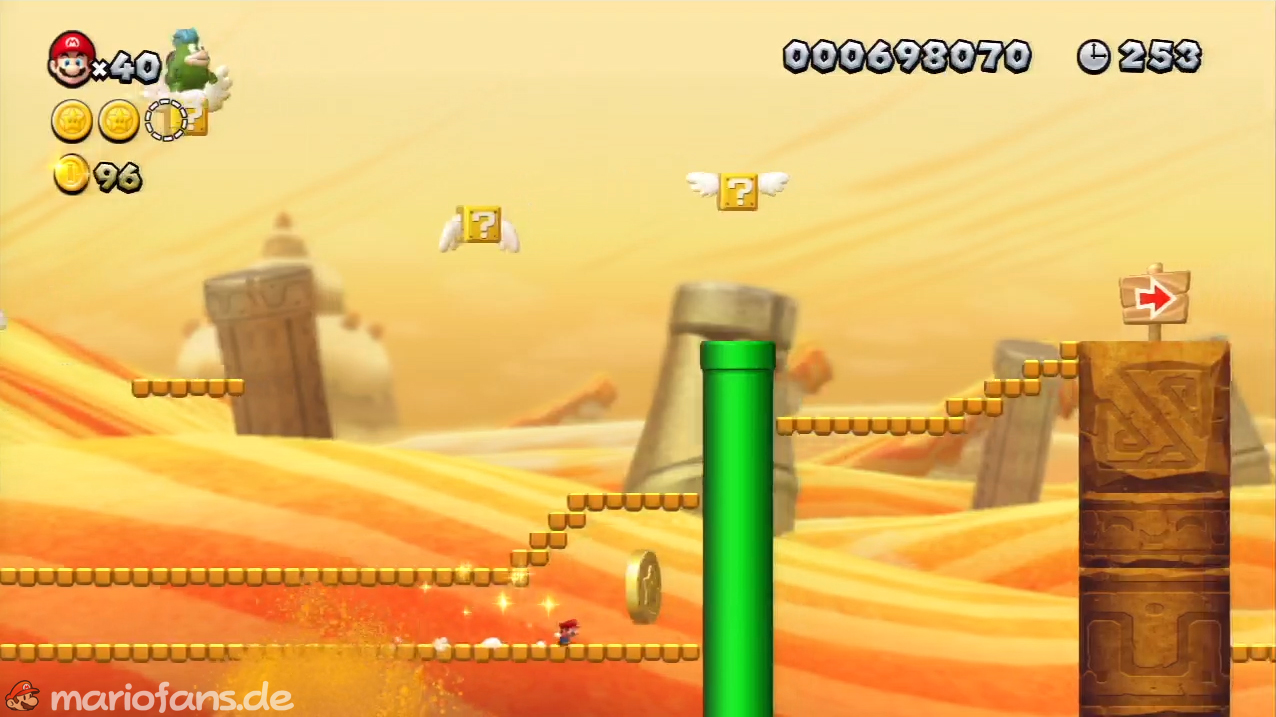 Welcome to World 2: Layer-Cake Desert in New Super Mario Bros. U — a challenging desert world filled with shifting sands, Pokeys, and hidden paths.