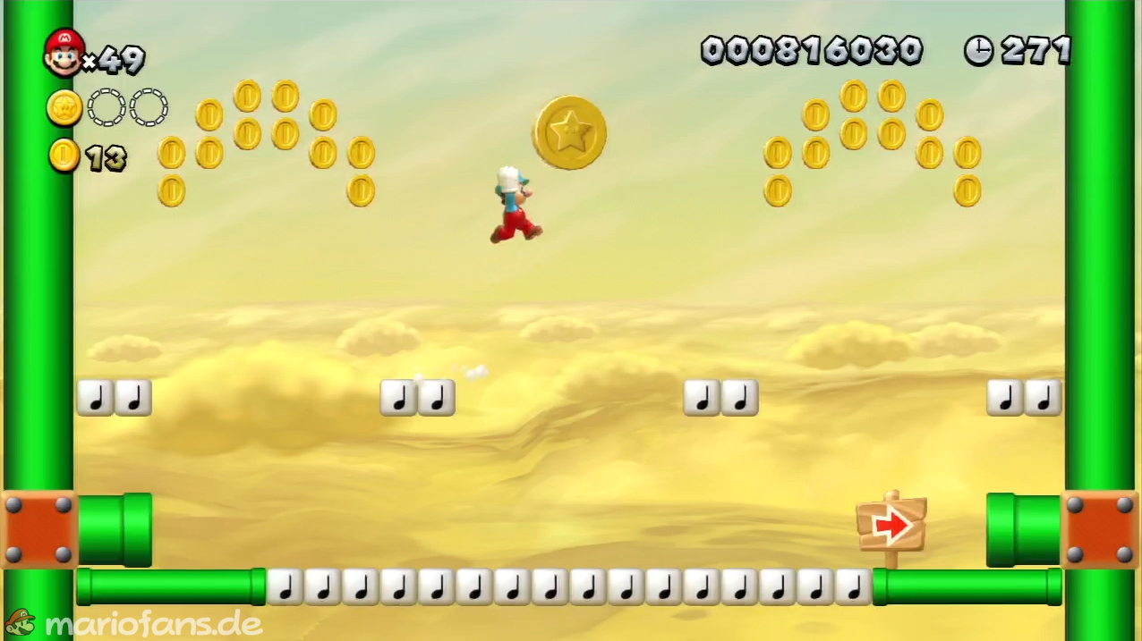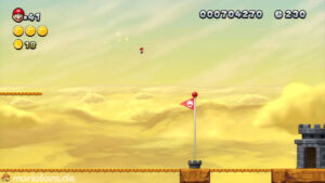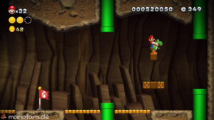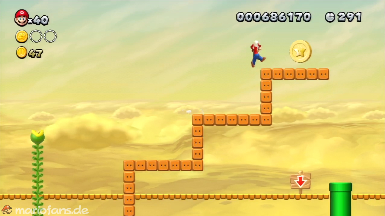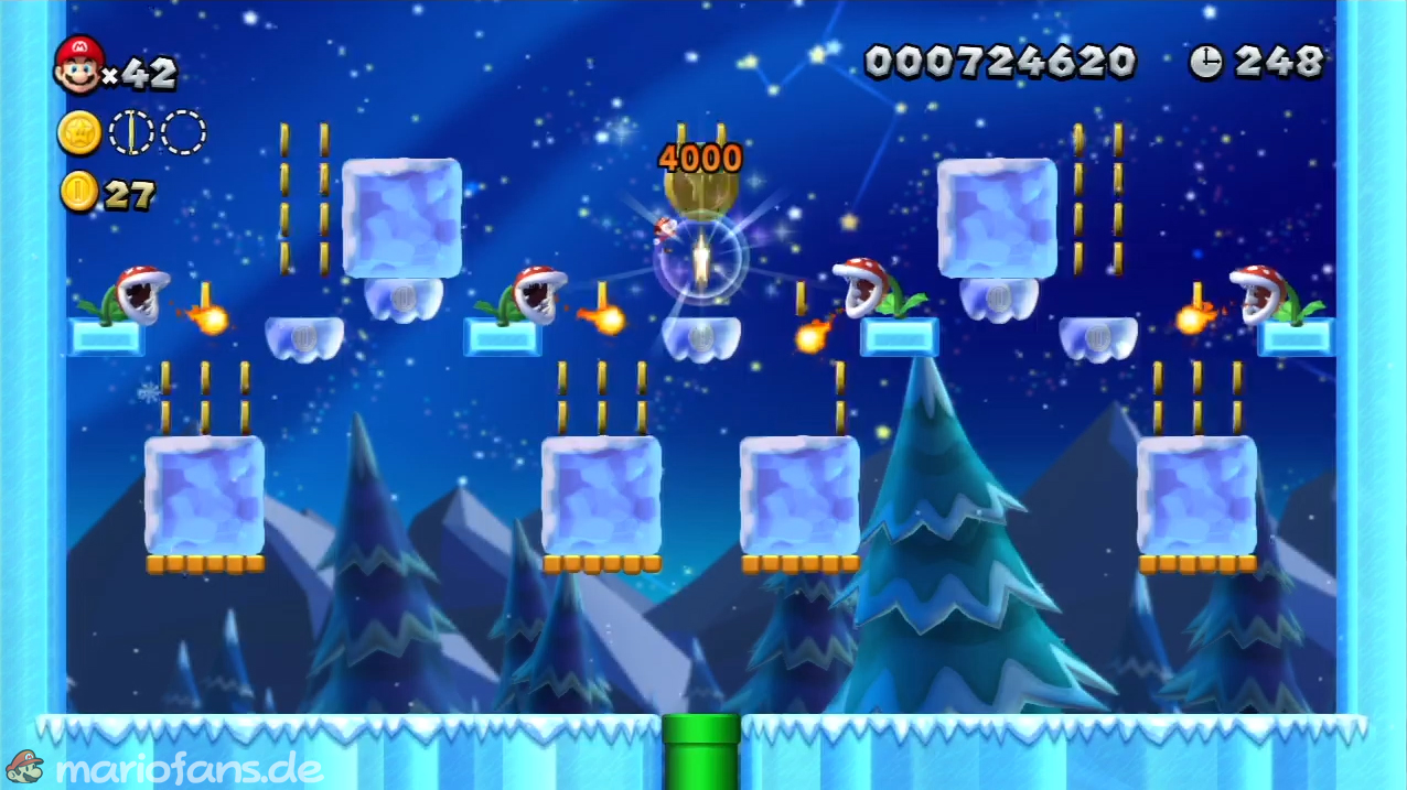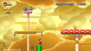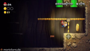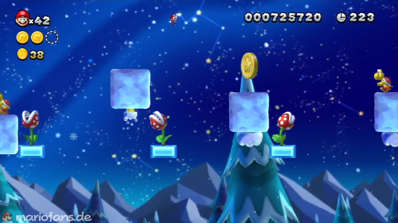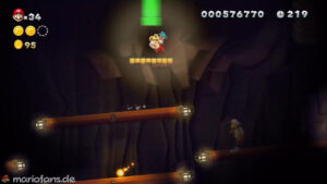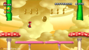 - Star Coin 2: Use the Super Acorn to fly up the palm tree after the checkpoint. Enter the pipe and activate the P-Switch.