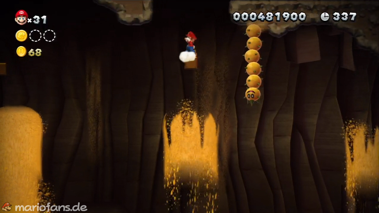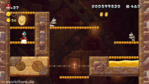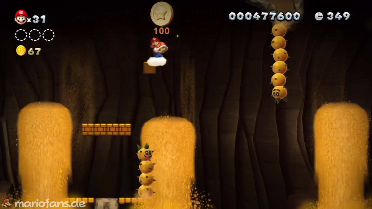 - Star Coin 2: Activate a hidden block between Pokeys, wall jump to the ceiling path.