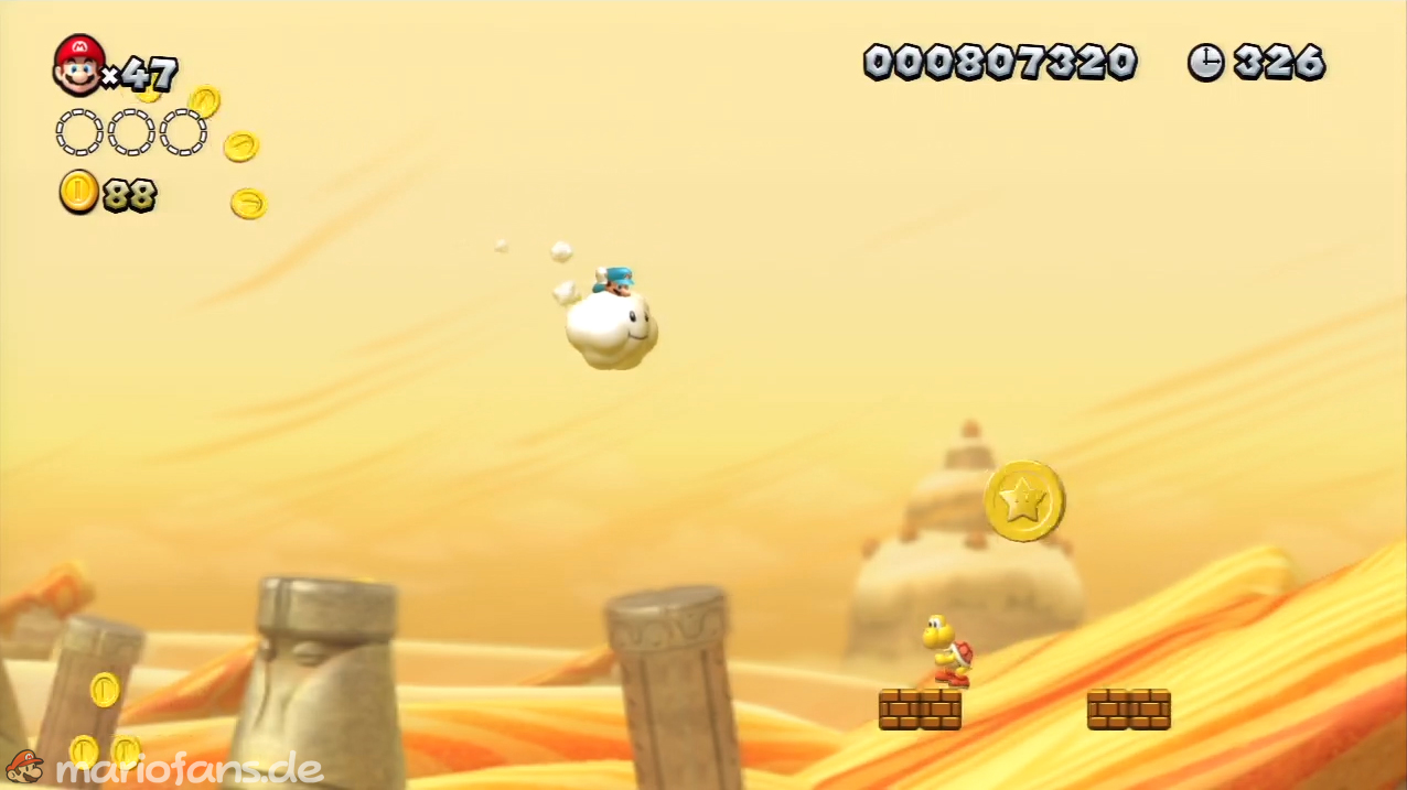 - Star Coin 2: Use Lakitu cloud to reach pipe.